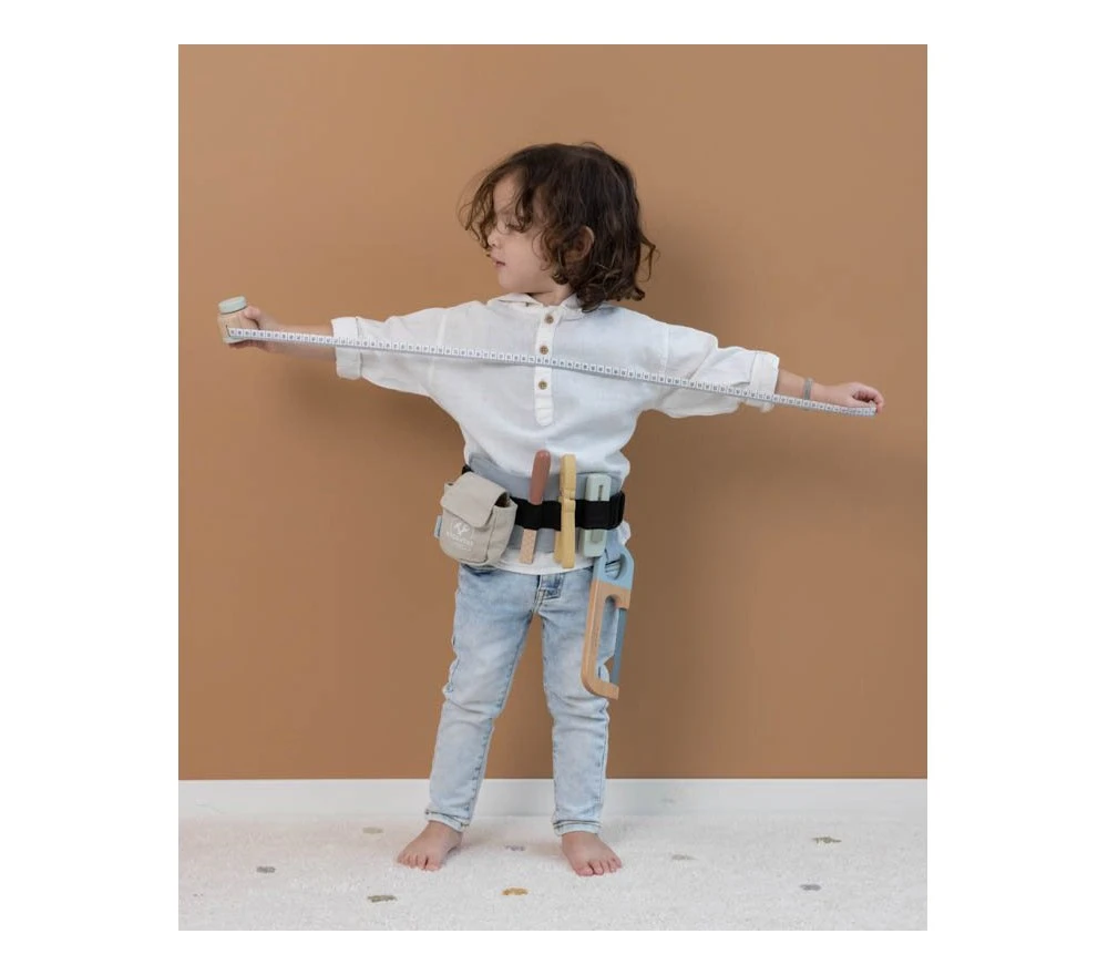 Una cintura degli attrezzi per piccoli esperti del fai da te. Metro, lima, sega, cutter, pinza… tutto il necessario per ogni lavoretto da fare in casa!
