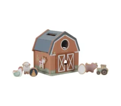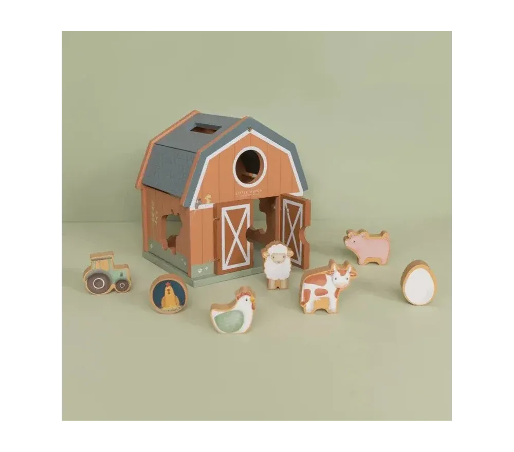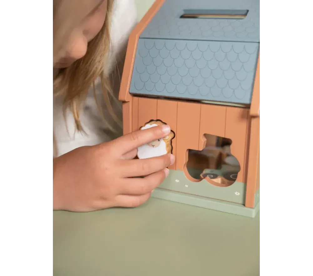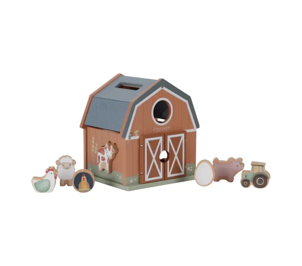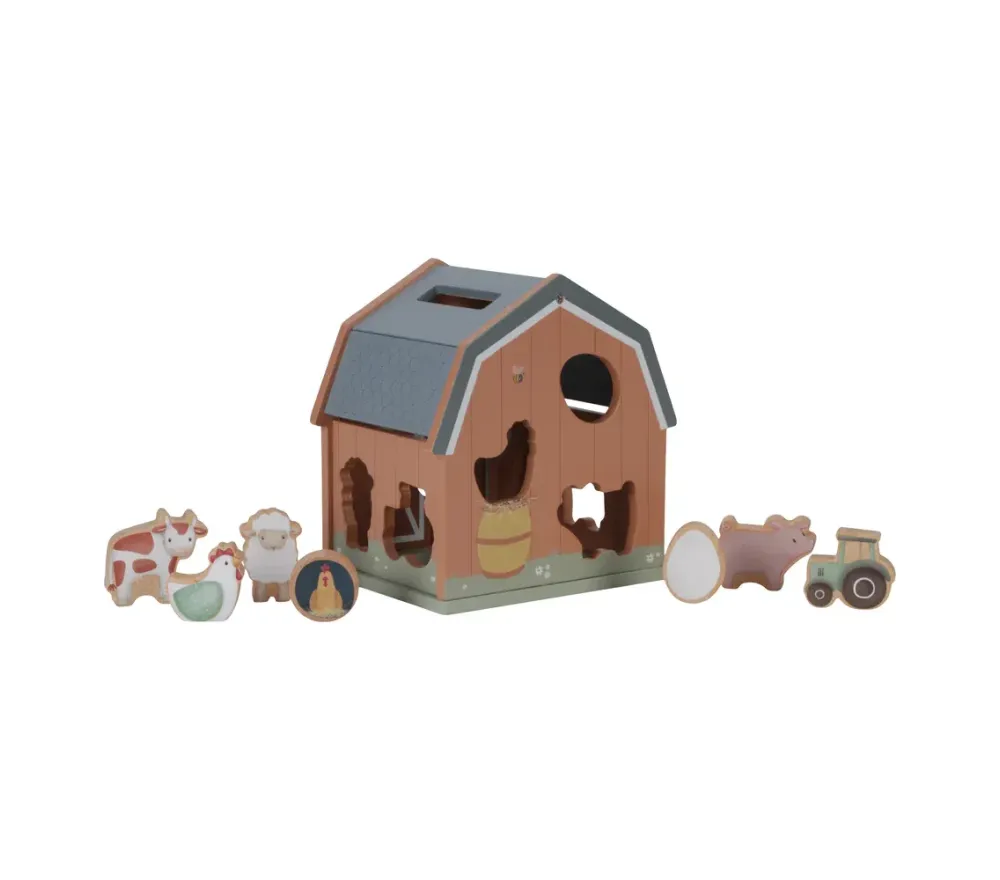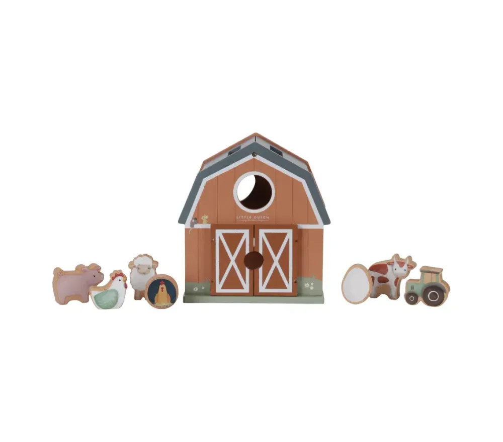 Il classico gioco degli incastri che allena la motricità fine, la coordinazione occhio-mano e la logica, in versione fattoria. 7 elementi diversi da incastrare che potranno essere recuperati aprendo la porticina della fattoria. In legno.