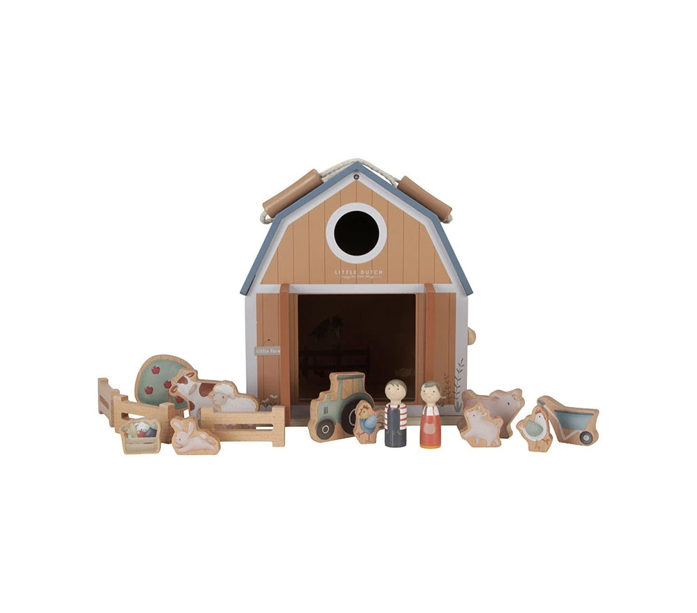 Grazie alle comode maniglie è possibile trasportare la fattoria in modo semplice e pratico! In legno FSC.