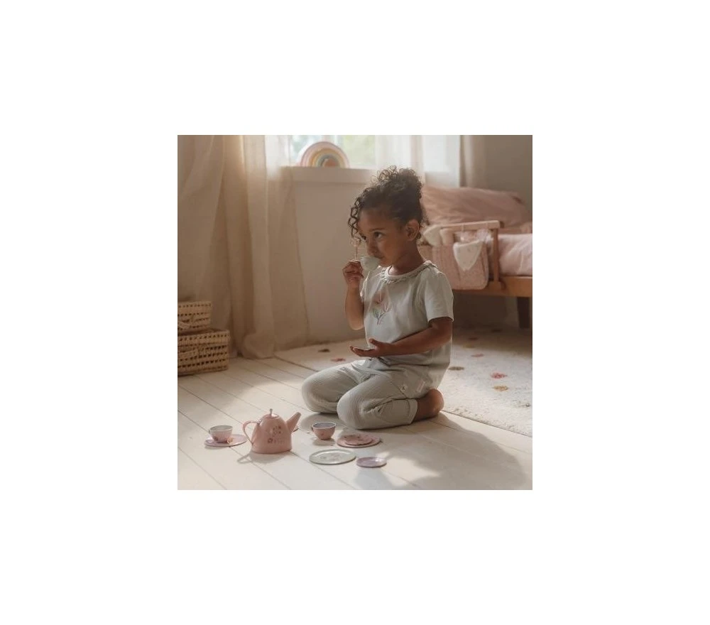 Un romantico set da te in metallo, con delicate illustrazioni della linea Fairy Garden, ideale per stimolare l’immaginazione e la motricità fine dei bimbi. Il set è composto da 4 tazzine, 4 piattini, 4 piatti da dolce e una teiera con coperchio.