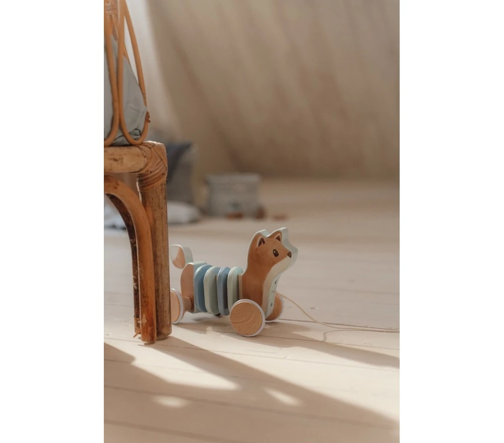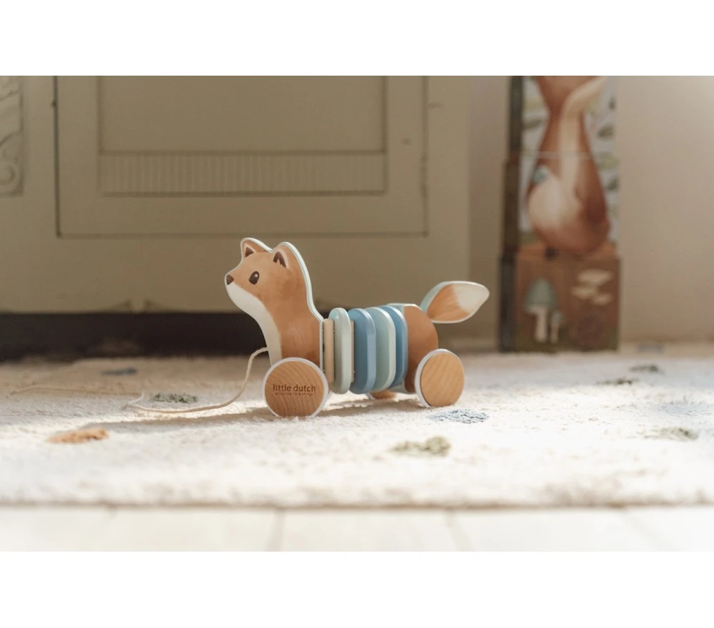 Una simpatica volpe in legno snodabile perfetta per accompagnare i primi passi dei bimbi!