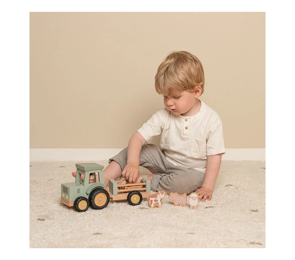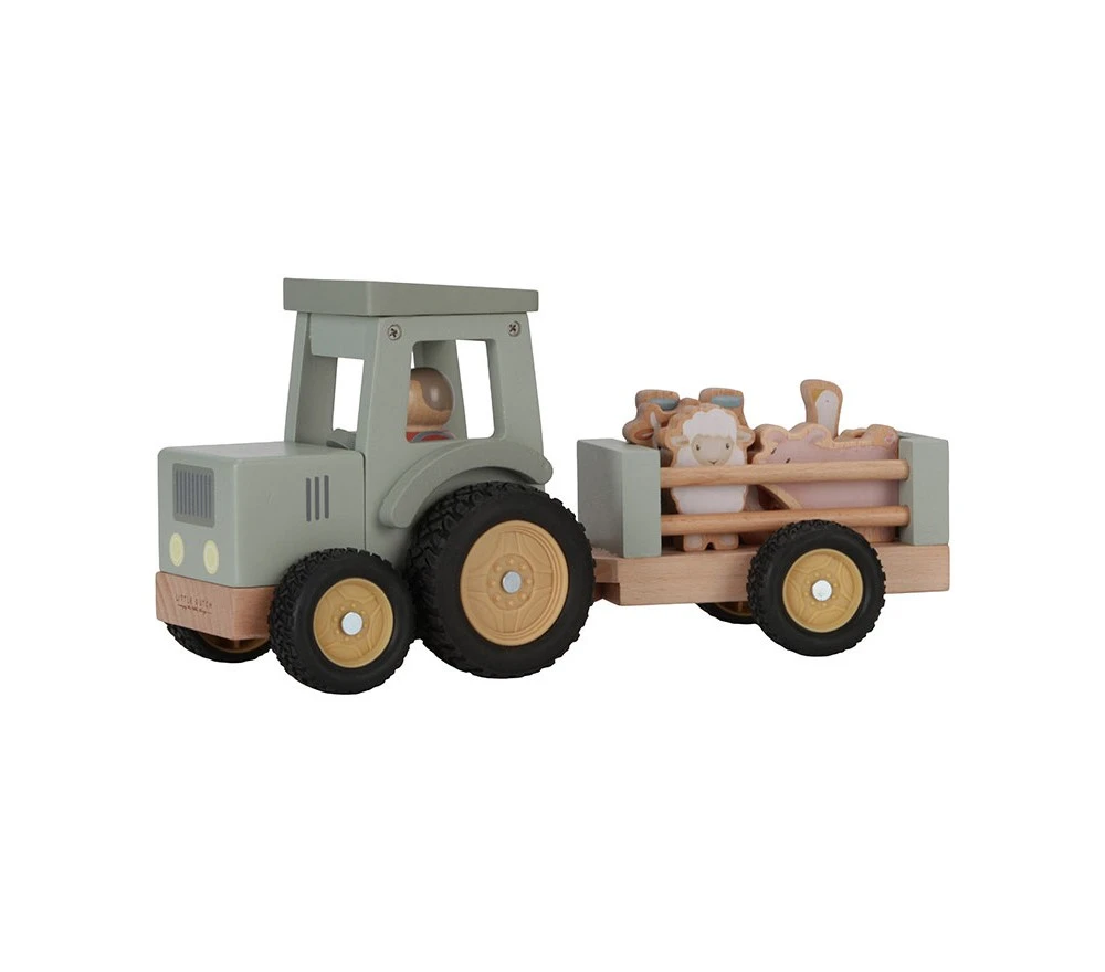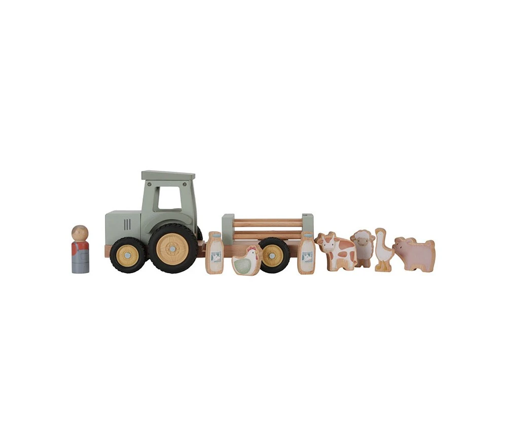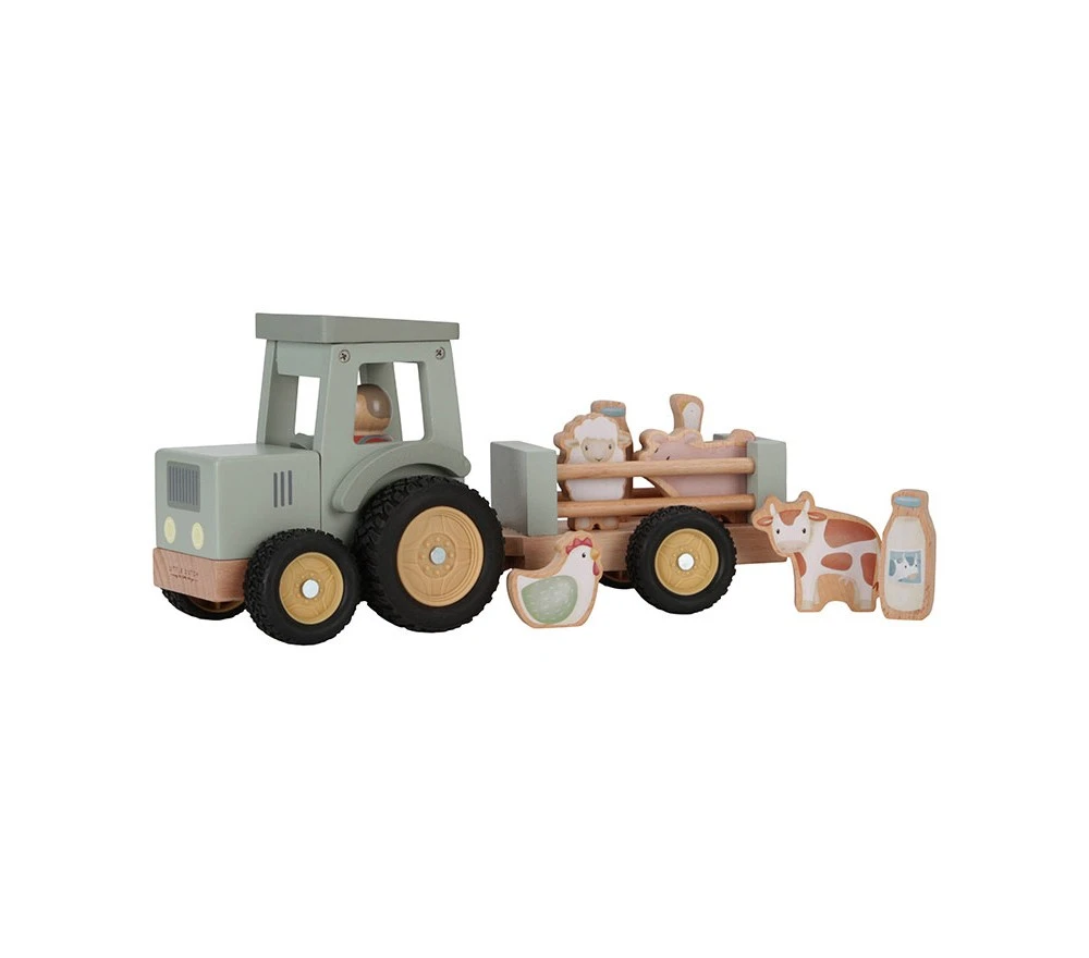 Un fantastico trattore in legno con un rimorchio per trasportare gli animali e il latte appena munto! Un gioco di immaginazione classico e sempre apprezzato dai più piccoli, con i colori pastello e le illustrazioni in pieno stile Little Dutch!
