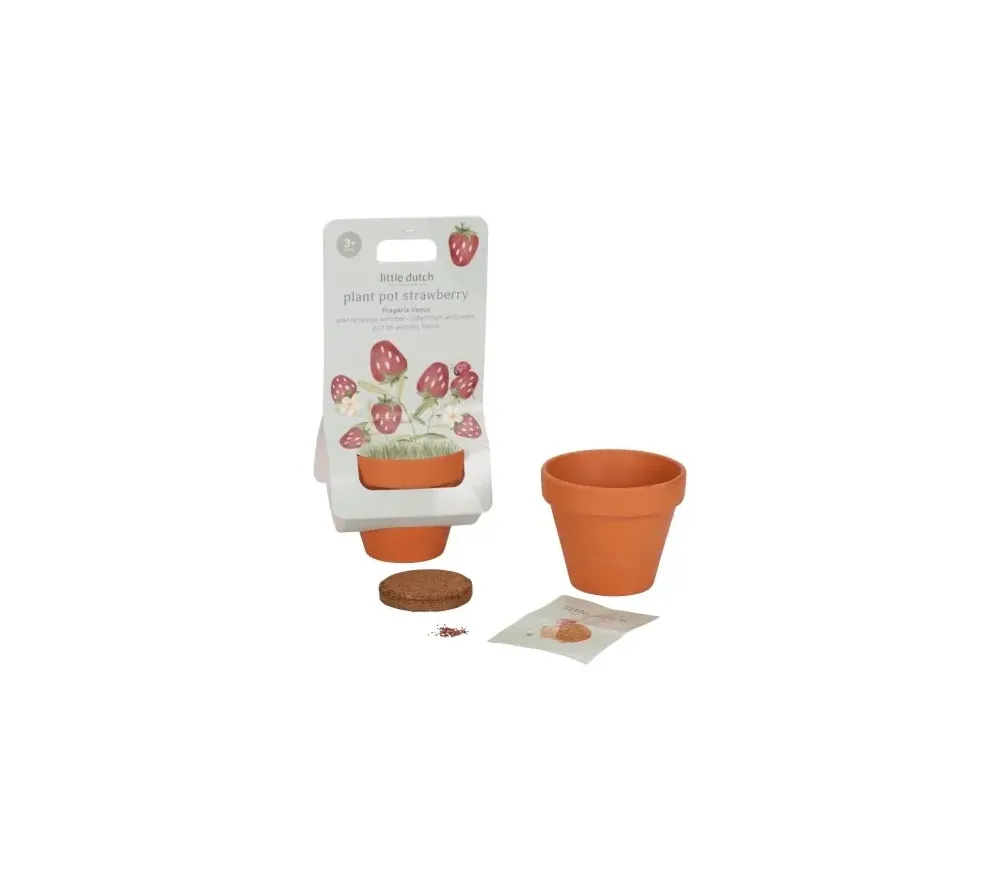 Un vasetto in terracotta con una bustina di semi, una cialda di terra e una bustina di semi per far crescere una piantina di fragole! Per i bimbi sarà un’esperienza entusiasmante ed istruttiva!