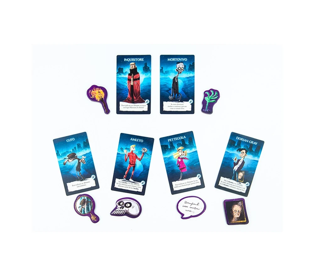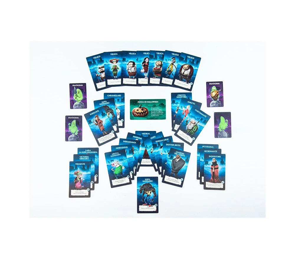 In questo titolo, adatto a gruppi anche molto numerosi, i giocatori ricevono un ruolo segreto che li assegna a uno dei due schieramenti: i Lupi da una parte, i Villici abitanti del villaggio di Tabula dall’altra. Lo scopo dei primi, ovvero uno sparuto gruppo di Lupi Mannari e qualche improbabile alleato, è eliminare un po’ alla volta tutti gli altri, facendone un sol boccone durante la notte ed evitando di essere scoperti. Lo scopo dei Villici, invece, è individuare i Lupi ed eliminarli sfruttando la forza dei numeri. Per loro fortuna in questo compito possono fare affidamento su diversi personaggi dalle abilità particolari che influenzano la partita in diverso modo: il Veggente, il Medium, la Guardia del Corpo e tanti altri sono parte della fazione umana del villaggio!