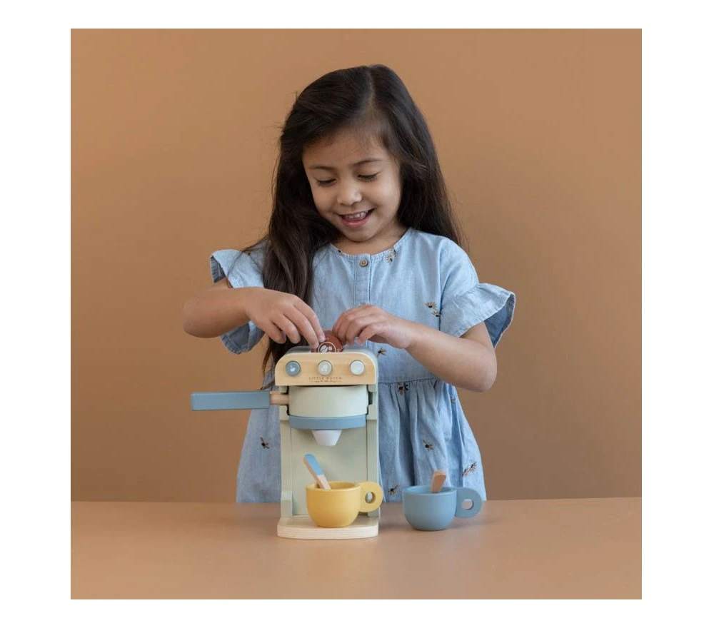 A volte un buon caffè è quello che serve a mamma e papà per una carica di energia. I bimbi potranno « preparare » gustose bavande calde con questa simpatica macchina del caffè. Cialde diverse, tazzine e cucchiaini… non manca nulla per una pausa rigenerante!