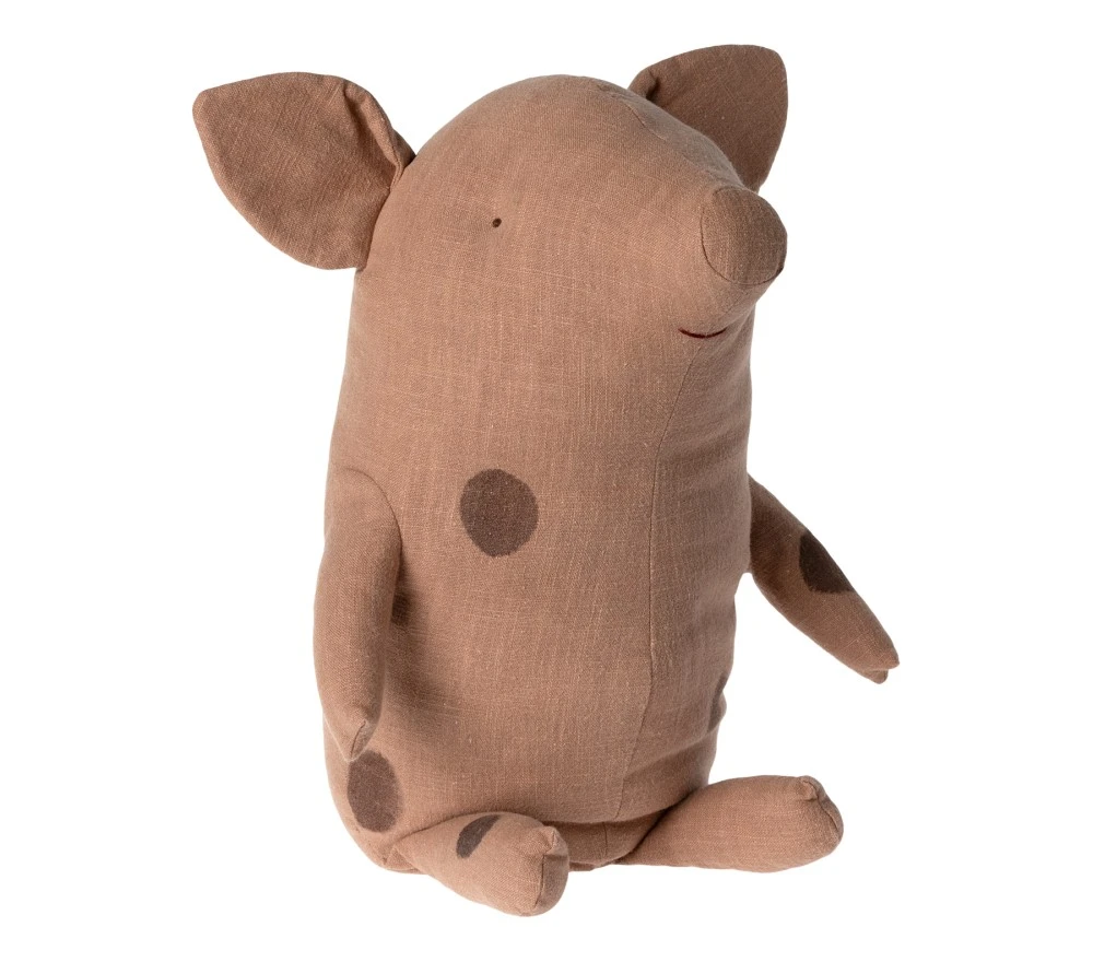 Un maialino simpaticissimo tutto da abbracciare! Esterno in ramie/cotone e interno in poliestere 100% riciclato.
