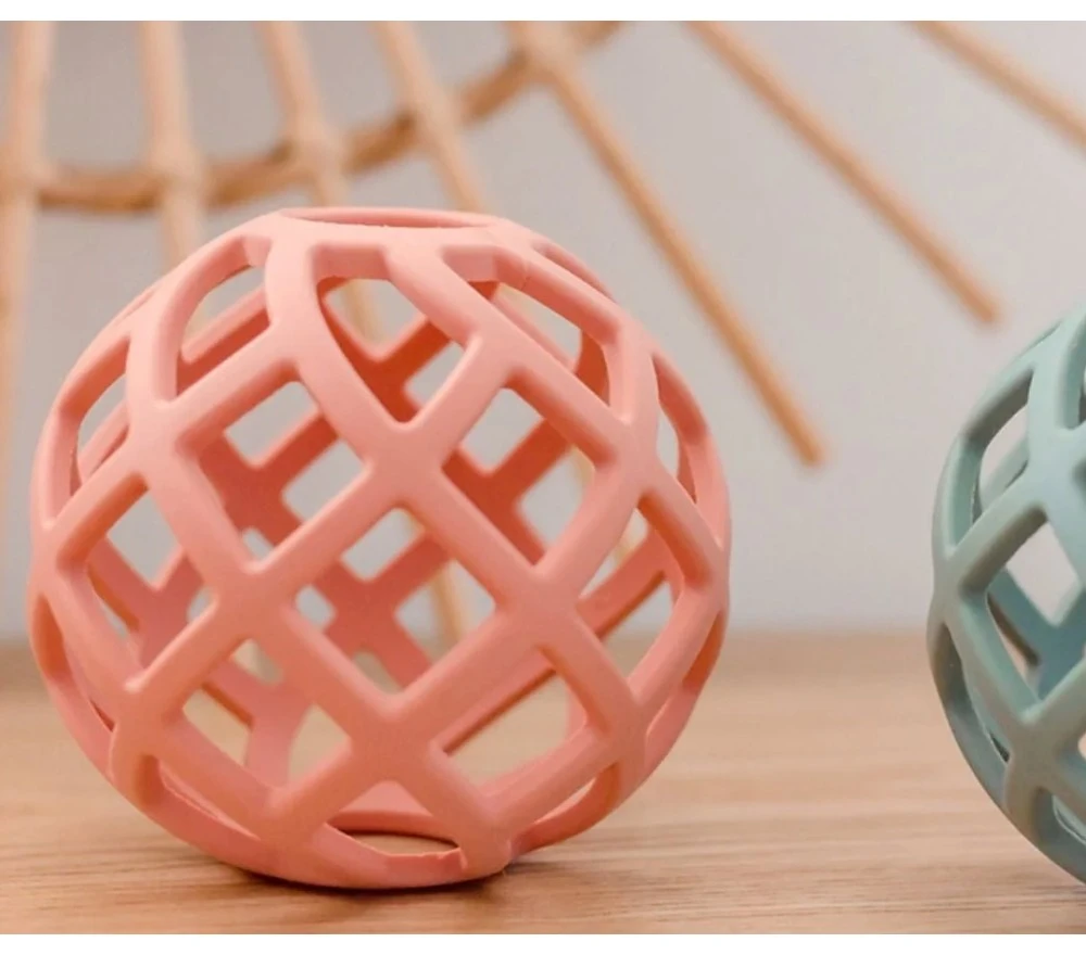 Una palla in morbido silicone alimentare (totalmente atossico e privo di BPA o ftalati) per i primi esperimenti di motricità e perfetta anche per la dentizione.