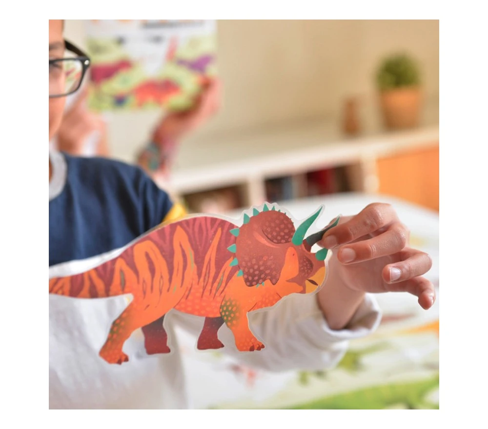 Un grande (100 x 68 cm) poster tutto da completare con i 32 stickers di varie specie di dinosauri. I grandi stickers sono davvero meravigliosi! Un gioco educativo, creativo e stimolante!
