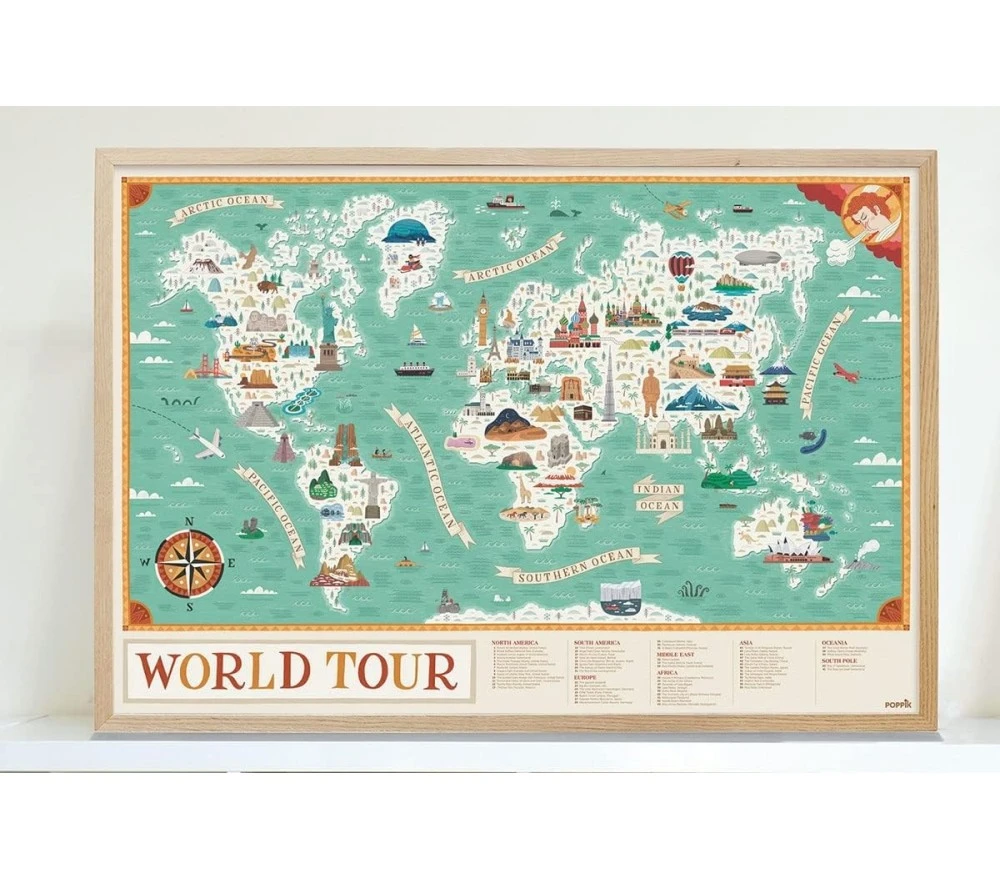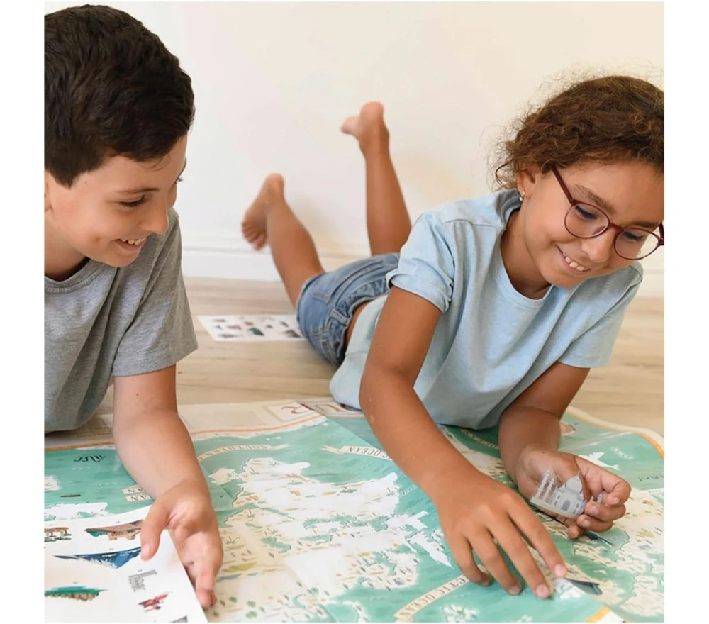 Un grande (100 x 68 cm) poster per fare il giro del mondo tra panorami e monumenti famosi! 71 grandi stickers da posizionare per scoprire e imparare meravigliose attrazioni sul nostro pianeta.