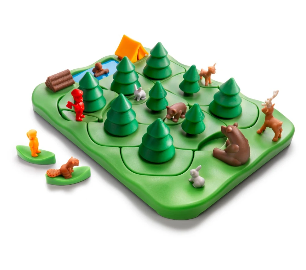 2 GIOCO: L’obiettivo di Grizzly Gears è spostare ogni personaggio nella sua posizione finale. I personaggi si muovono ruotando i pezzi a forma di albero. Solo il piccolo ordo può essere spostato davanti a mamma orsa!
