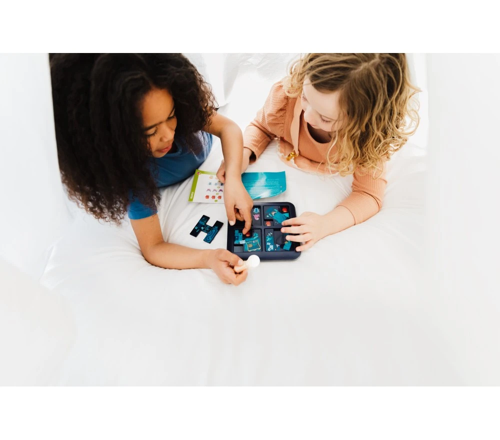 Questo gioco di logica per bambini e adulti è dotato di un tabellone portatile con coperchio che lo rende ideale da portare in viaggio!