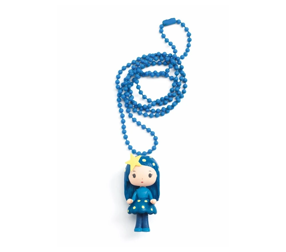Per potrare la propria amica preferita sempre con sè, Djeco ha creato una collana con una Tinyly in miniatura.