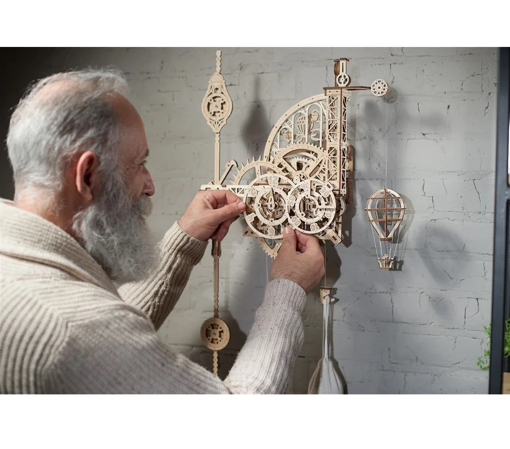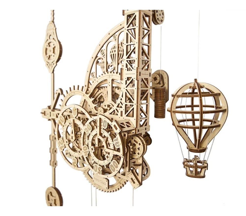 Ci sono voluti anni di test e progettazione minuziosa, ma finalmente gli ingegneri di Ugears hanno sfornato un modello di orologio a pendolo davvero unico! Con un’ambientazione originalissima dedicata ai primi voli e con il classico tocco steampunk, questo orologio ha davvero tantissimi dettagli da scoprire!