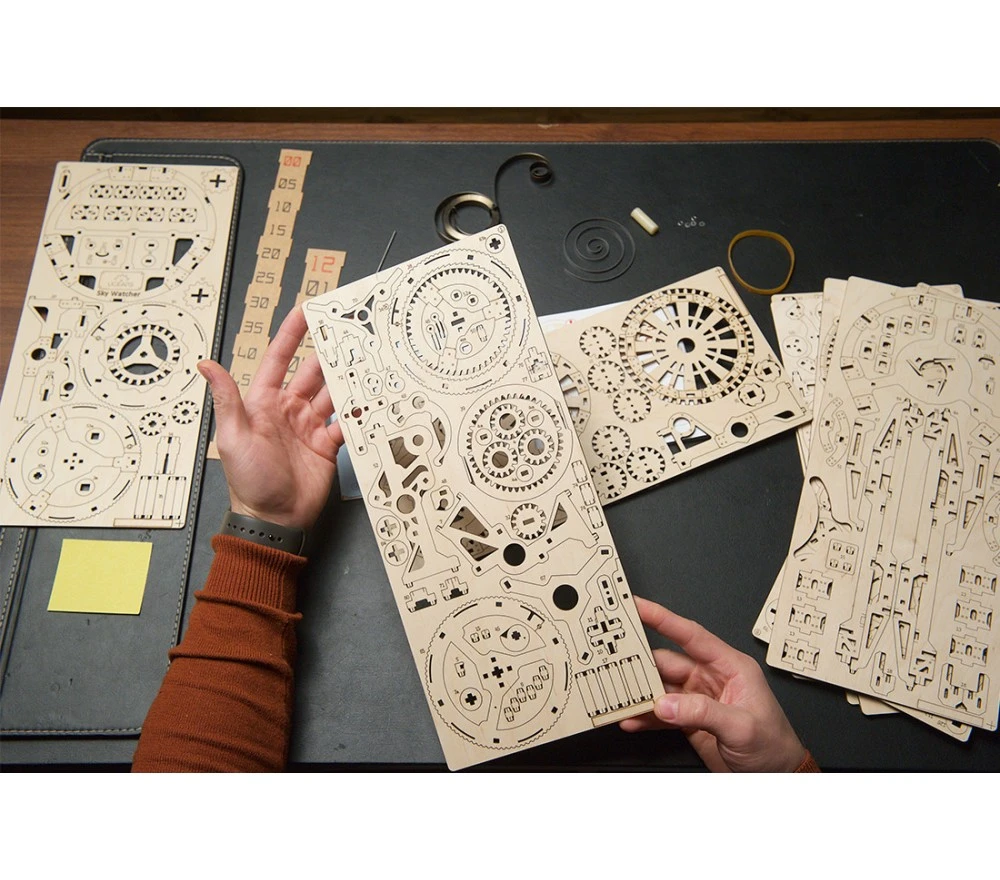 Per gli amanti dell’orologeria e dei meccanismi a vista l’orologio con turbillon è di sicuro il kit in legno da montare ideale!
