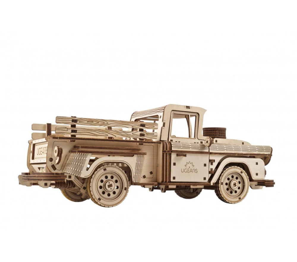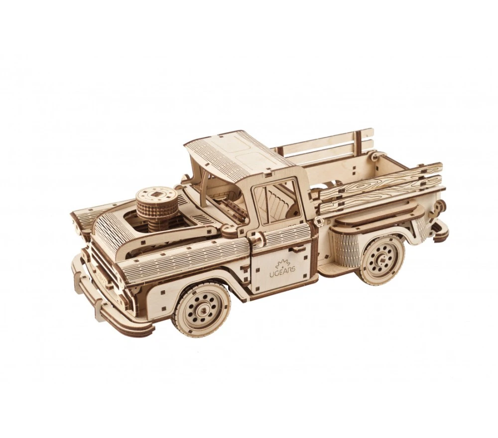 Basato sulla popolare Chevrolet 3100 del 1959, il modello è dotato di un motore a molla da 1 m x 7 mm (lo stesso del potente Ugears Drift Cobra) che consente al pickup di viaggiare fino a 6 metri e di trasportare carichi di 400 – 450 g nel pianale del camion. La manopola di avvolgimento è stilizzata per assomigliare a un filtro dell’aria superiore aperto che emerge dal cofano. Solleva il cofano per rivelare il bellissimo motore V8 che si accende!